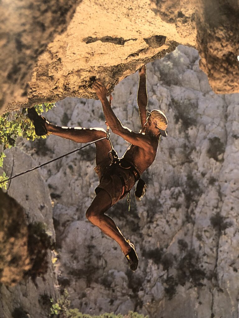 1990 war ich ein zweites Mal auf Sardinien, inzwischen gab es die ersten Sportkletterrouten. Dieses Mal hatte ich sogar ein Seil auf meine Vespa gepackt. Es existierte nur ein rudimentärer Topo-Guide mit ein paar simplen Skizzen. Ich kletterte damals im Top Gebiet Punta Pilocca und im Gennargentu (Zentralgebirge) bis 6b+.